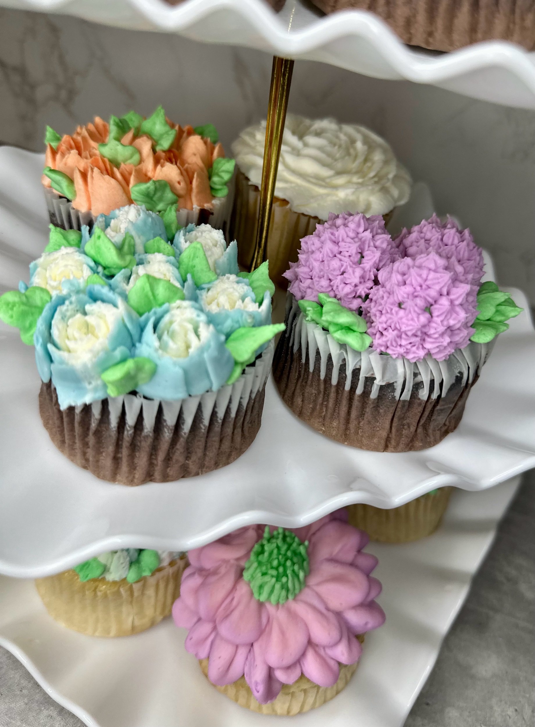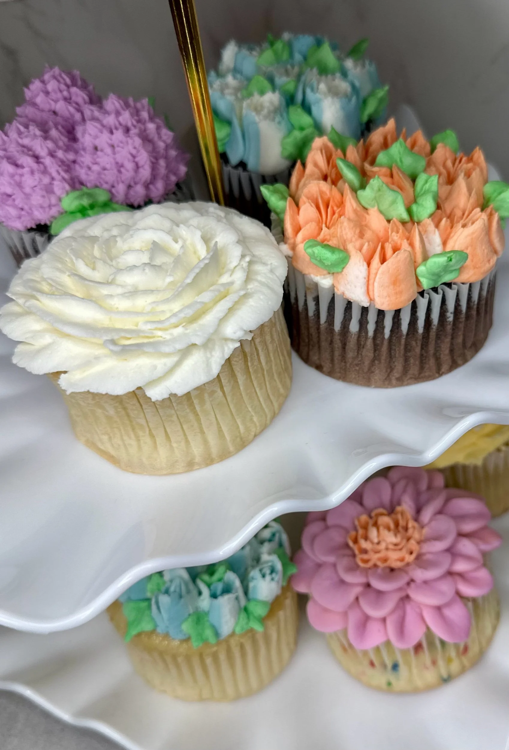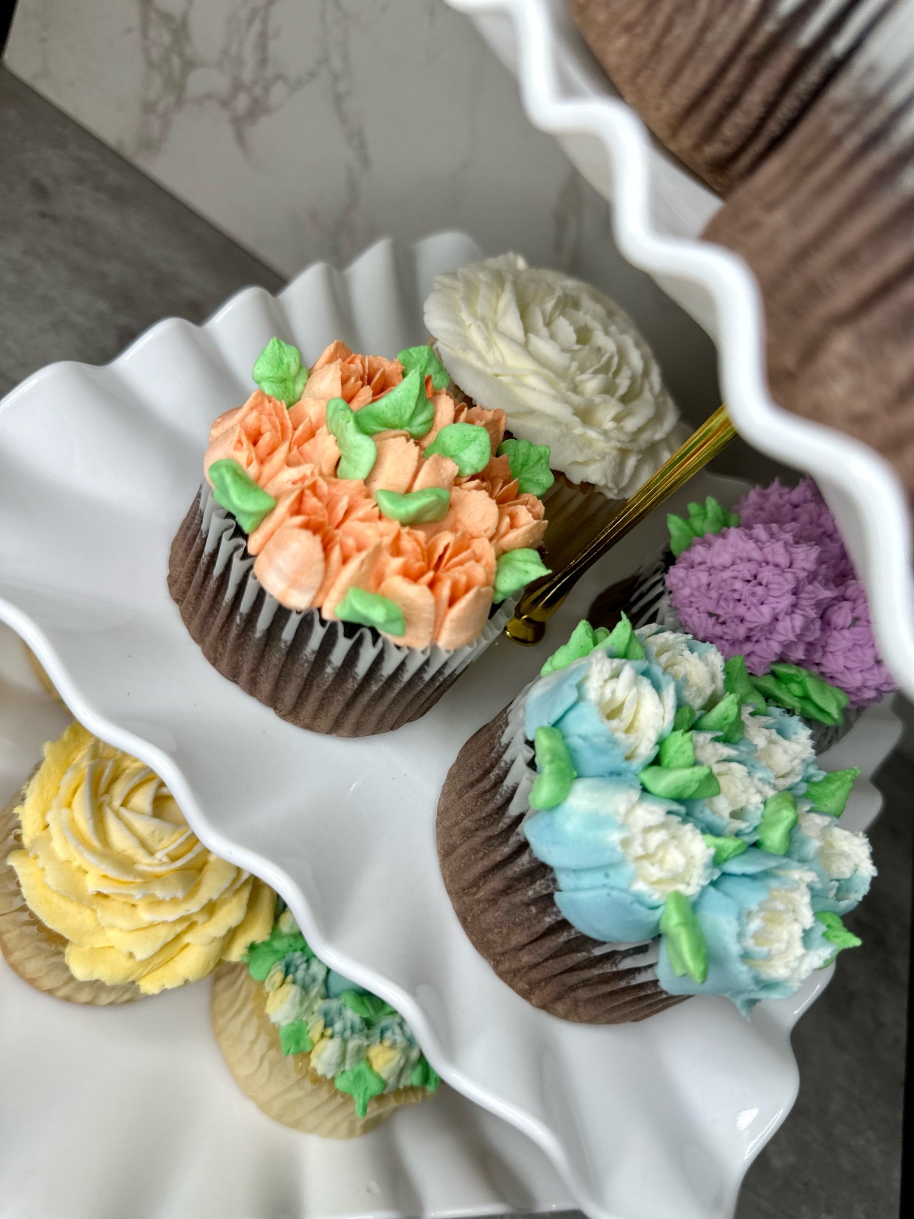 Products › Floral Cupcakes (4 ct) Image 1 of 8 Image 2 of 8 Image 3 of 8 Image 4 of 8 Image 5 of 8 Image 6 of 8 Image 7 of 8 Image 8 of 8 Floral Cupcakes (4 ct) $22.00 Handcrafted, jumbo sized vanilla cupcakes, uniquely decorated with various florals Add To Cart Added! Handcrafted, jumbo sized vanilla cupcakes, uniquely decorated with various florals