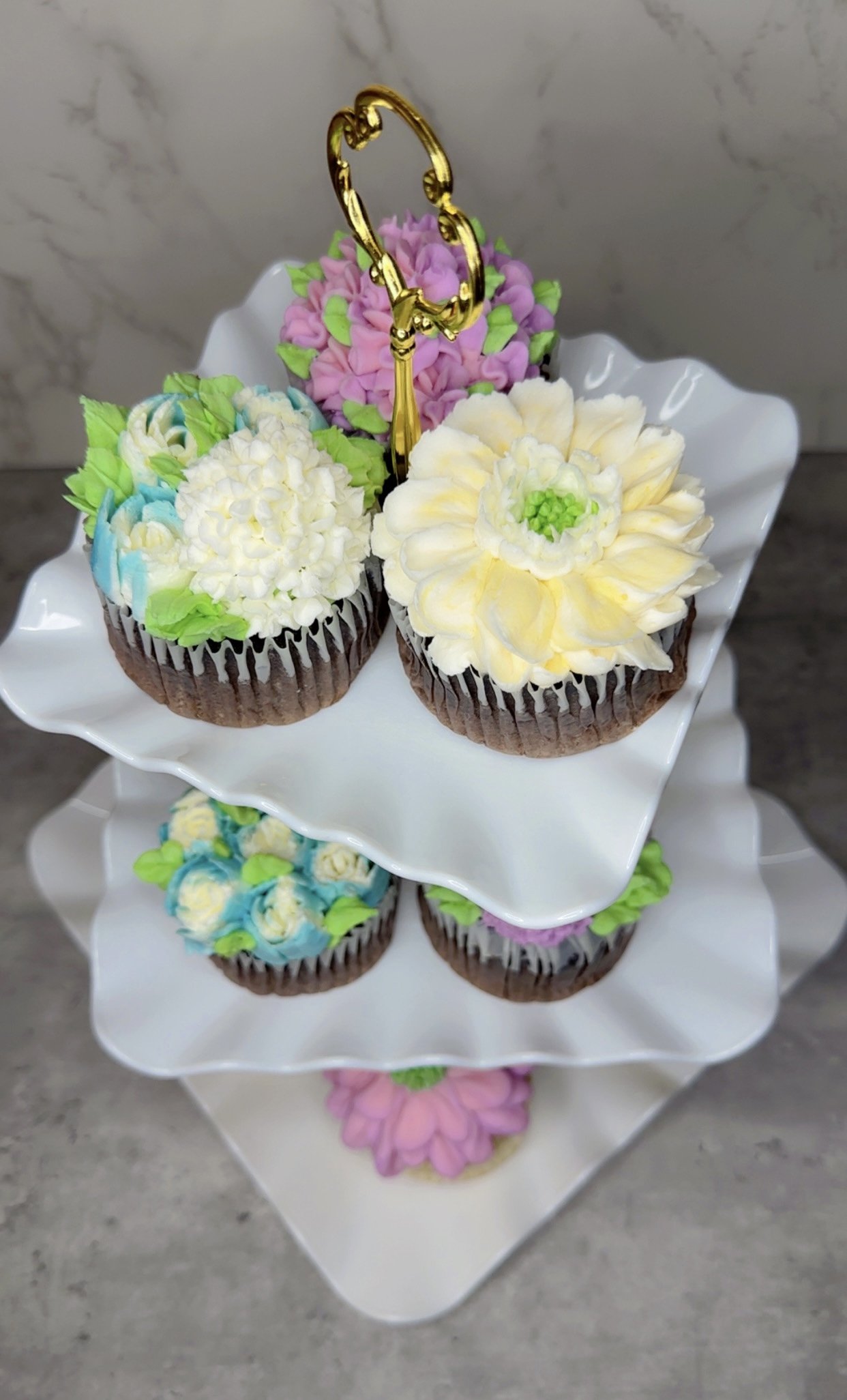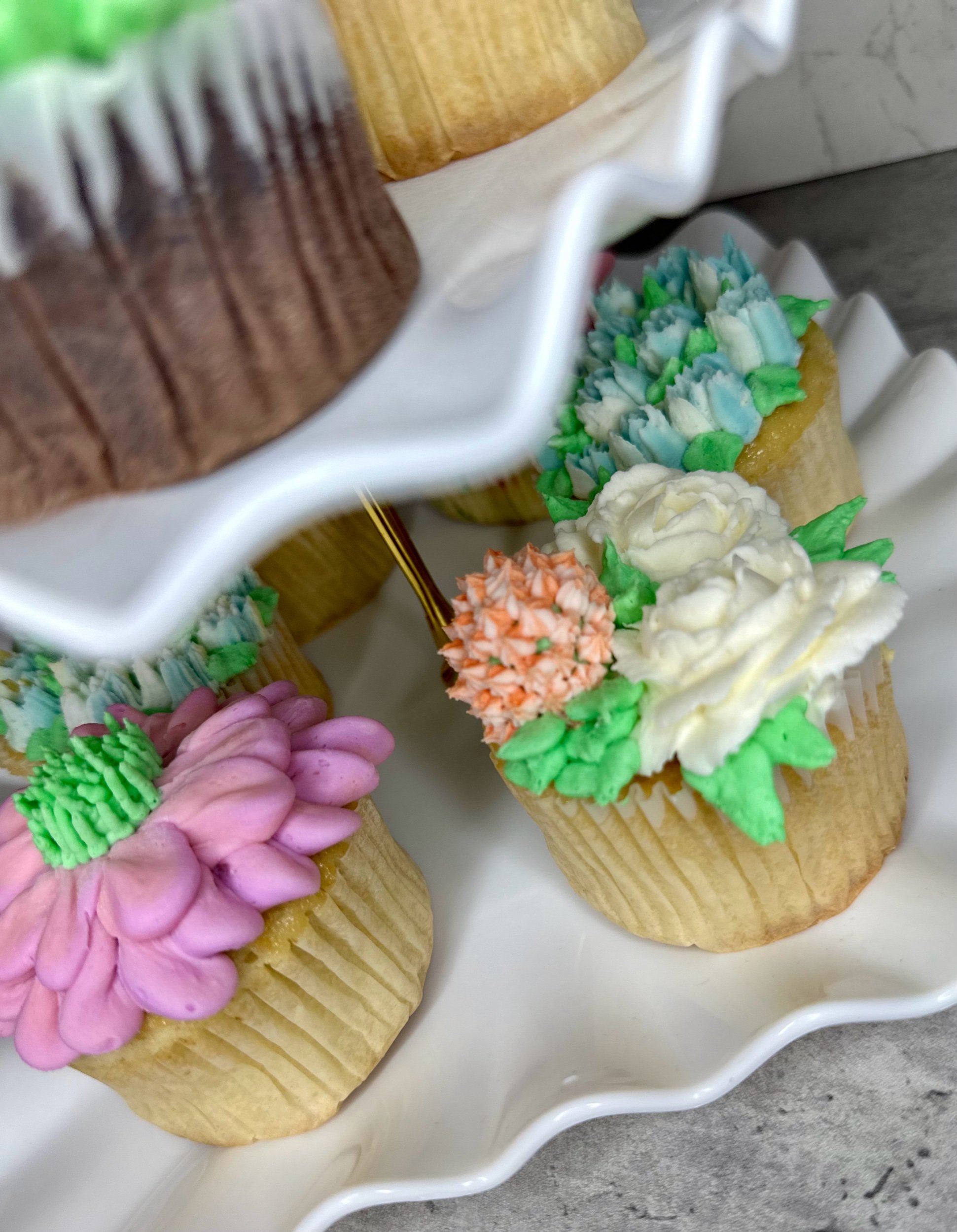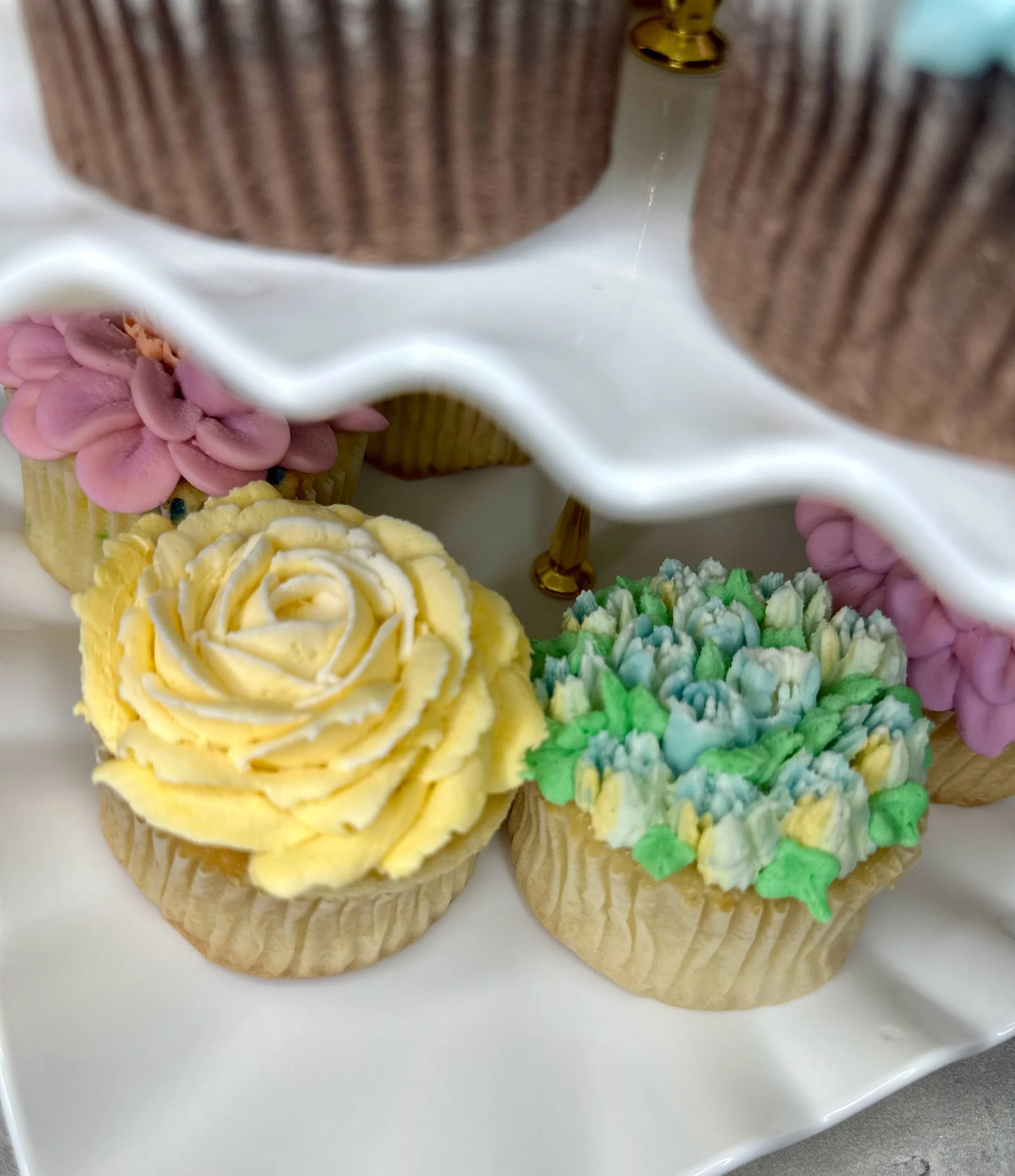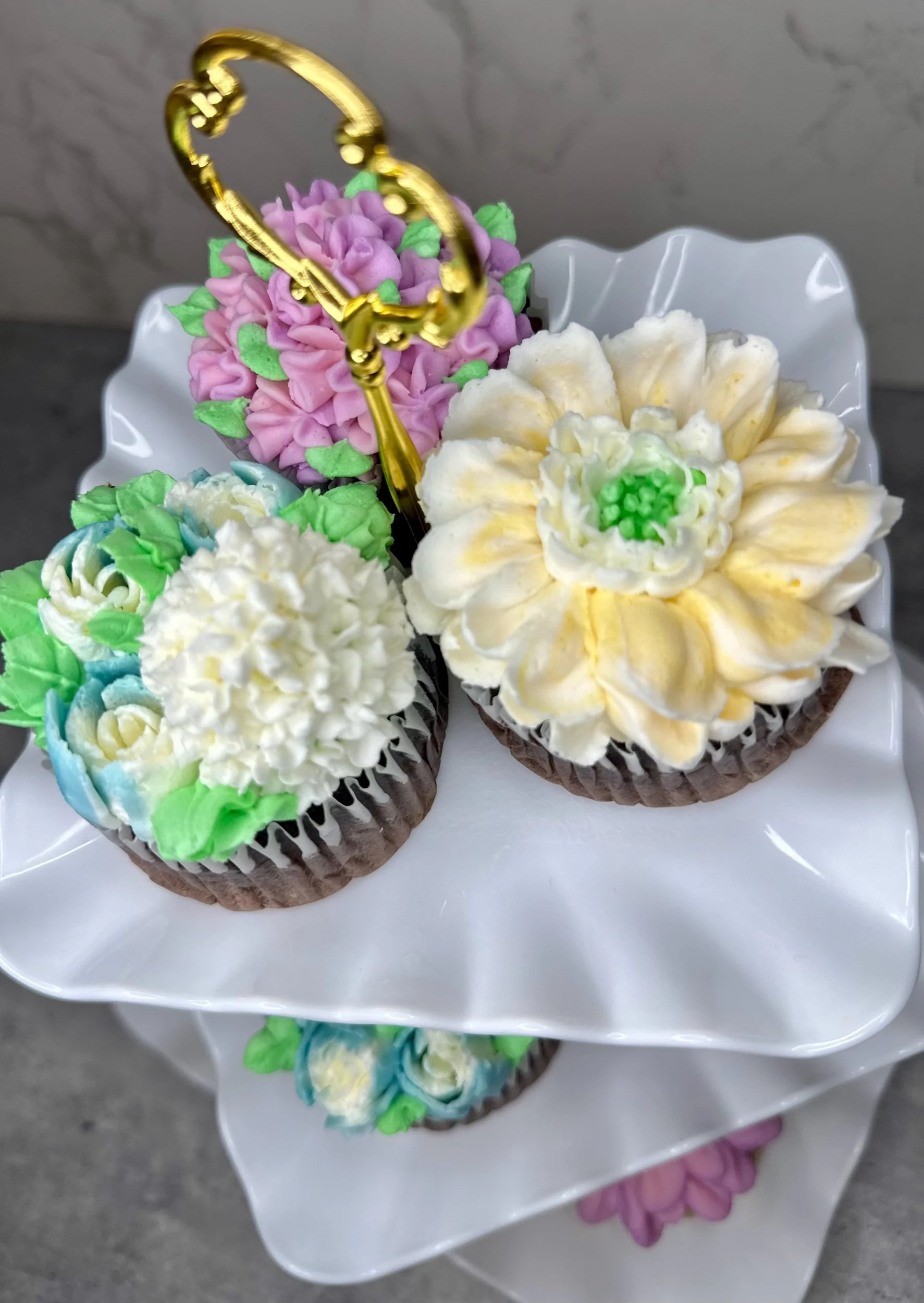 Products › Floral Cupcakes (4 ct) Image 1 of 8 Image 2 of 8 Image 3 of 8 Image 4 of 8 Image 5 of 8 Image 6 of 8 Image 7 of 8 Image 8 of 8 Floral Cupcakes (4 ct) $22.00 Handcrafted, jumbo sized vanilla cupcakes, uniquely decorated with various florals Add To Cart Added! Handcrafted, jumbo sized vanilla cupcakes, uniquely decorated with various florals